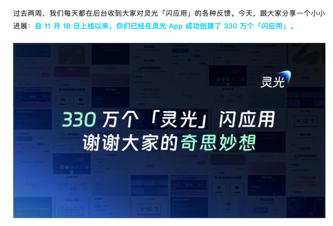 灵光宣布上线两周生成“闪应用”330万个,图/灵光APP官方微信公众号