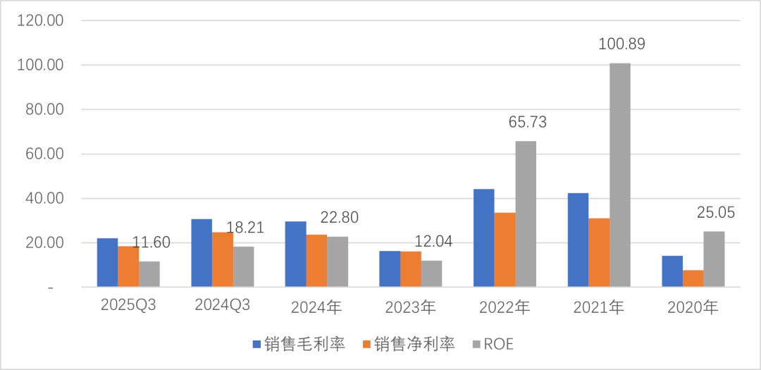 21、22年ROE高达60%以上,23年、24年ROE则复归常态,分别为12.04%、22.8%。
