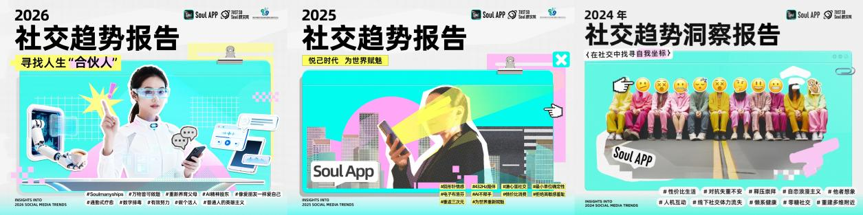 作为持续关注青年文化的社交平台,Soul App已连续三年发布年度社交趋势报告。这种长期的坚持反映了该平台对青年群体变化、变迁的持续研究视角,使其成为了观察中国年轻人精神轨迹的一个重要窗口。从2024年到2026年,这三份报告并非孤立的现象总结,而是一部关于中国当代青年心理变迁的持续记录。