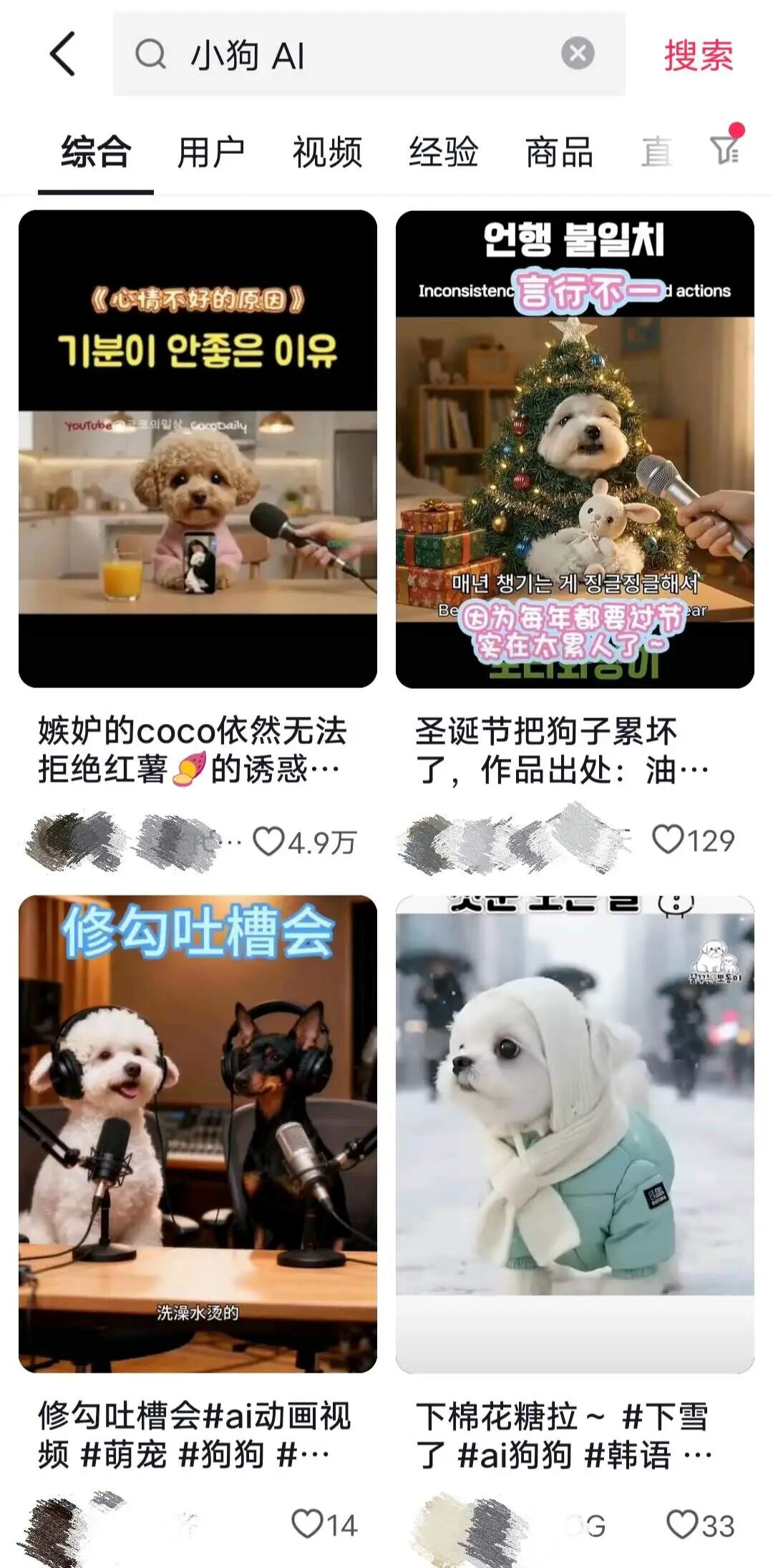 “最近真的很爱看韩国那个AI小狗的视频,根本停不下来,有人能懂吗?”12月,一位小红书用户发布了这样一条笔记,共收获超过2300个点赞、接近600条回复。沉迷AI小狗的人们,彼此分享着“连看好几遍”、“浪费三小时”的观看感受。无论是在下雨天接受采访哈哈大笑的马尔济斯犬“大麦”,还是面对镜头大喊“姨姨,爱你哟”的比熊犬“云朵”,“总有一款诈骗视频适合你”。