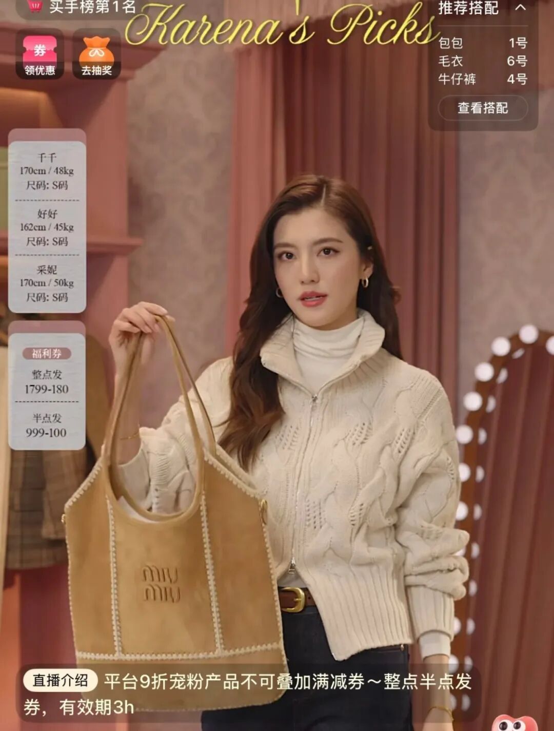 董洁的风格与传统直播截然不同:全程轻声慢语、娓娓道来,少用吆喝和低价促销。她精心布置直播间环境并邀请亲友互动,将好物分享包装成“闺蜜式生活分享”,精准契合 25–35 岁女性用户的审美诉求。高价小众品牌的销售则让人看到平台用户的购买力:52xx 元的开衫、4xxx 元的名牌鞋屡屡售罄。
