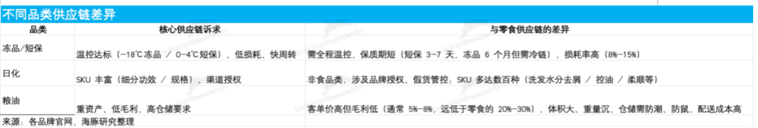 而新增其他品类后,从下图可以看到,实际上,每一种品类所需要的供应链能力维度都不相同,导致新增的品类其实很难和零食共享一套供应链系统,如果后期没法匹配相应的供应链能力,就很容易丧失成本优势,被迫收缩品类。