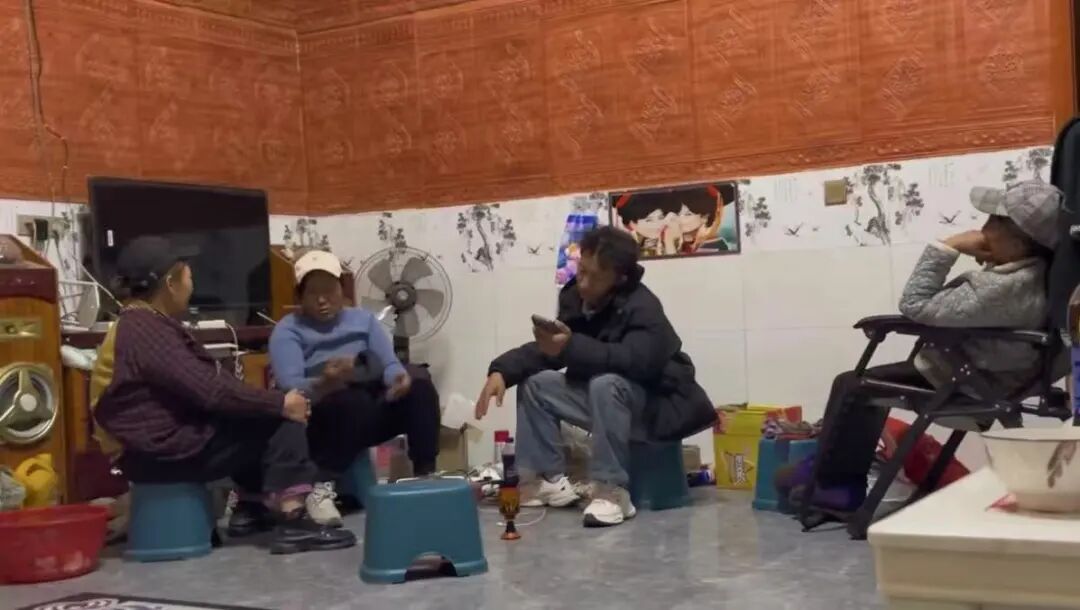 「邻里喝酒拜年,拿酒瓶的为阿达」