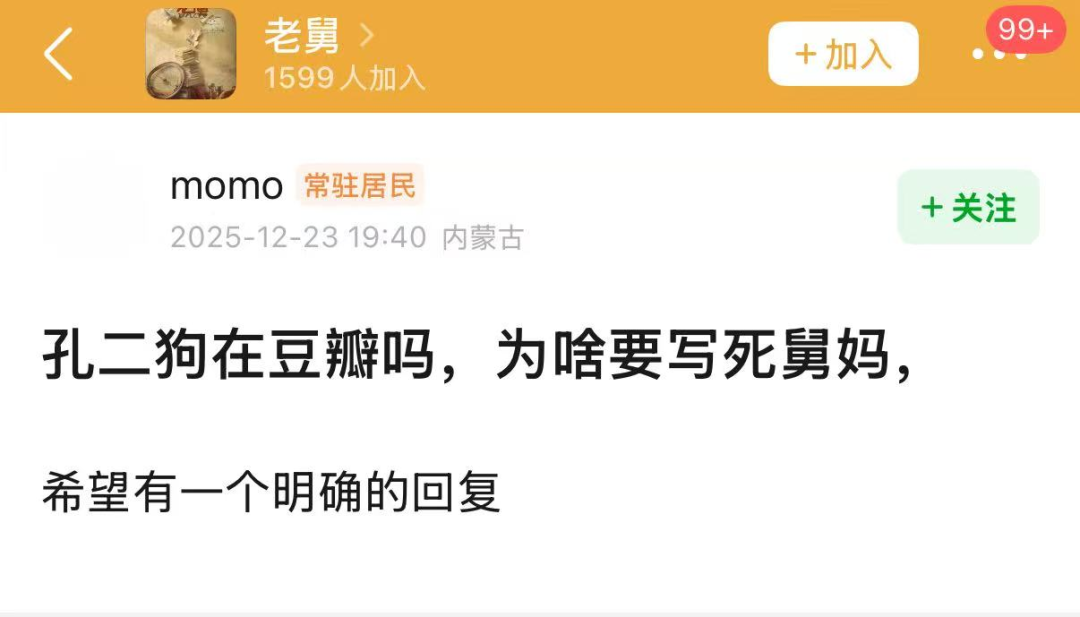 频频出现的悲惨遭遇让观众愈发“憋屈”,剧中的老舅浑身是劲儿没地使,观众更是憋着气想要找地撒,编剧兼导演孔二狗几日收到了上千条“想揍他”的私信。