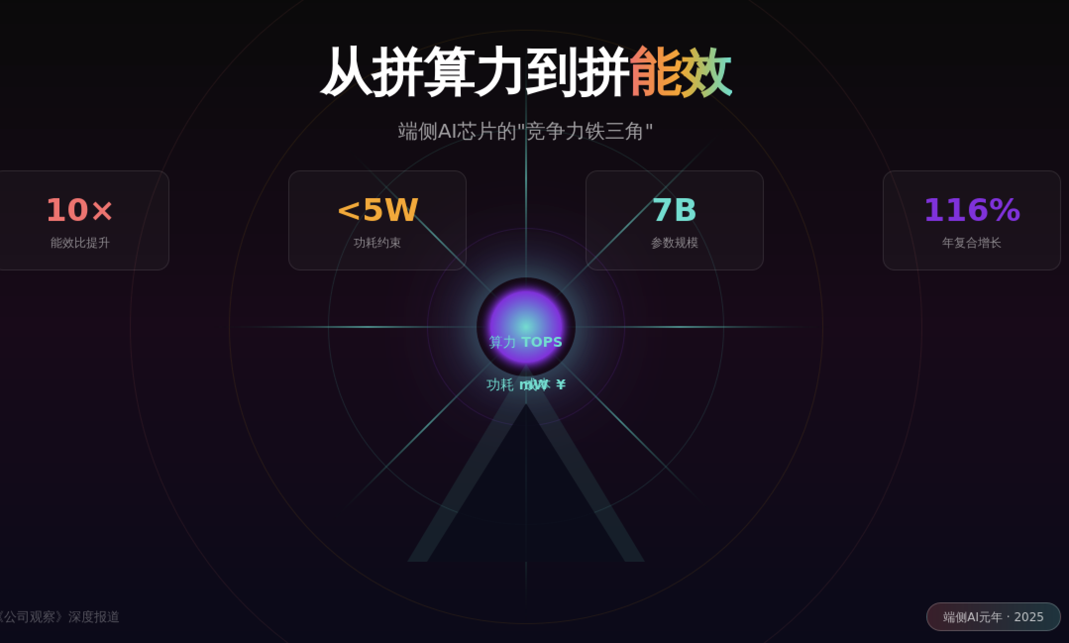 对于上游端侧AI芯片商来说,AI芯片价格战从云端烧到终端,又在终端燃起全新的“能效战”,核心命题是如何不断突破端侧AI芯片“竞争力铁三角”——即在算力、功耗、成本之间力争取得最佳平衡。