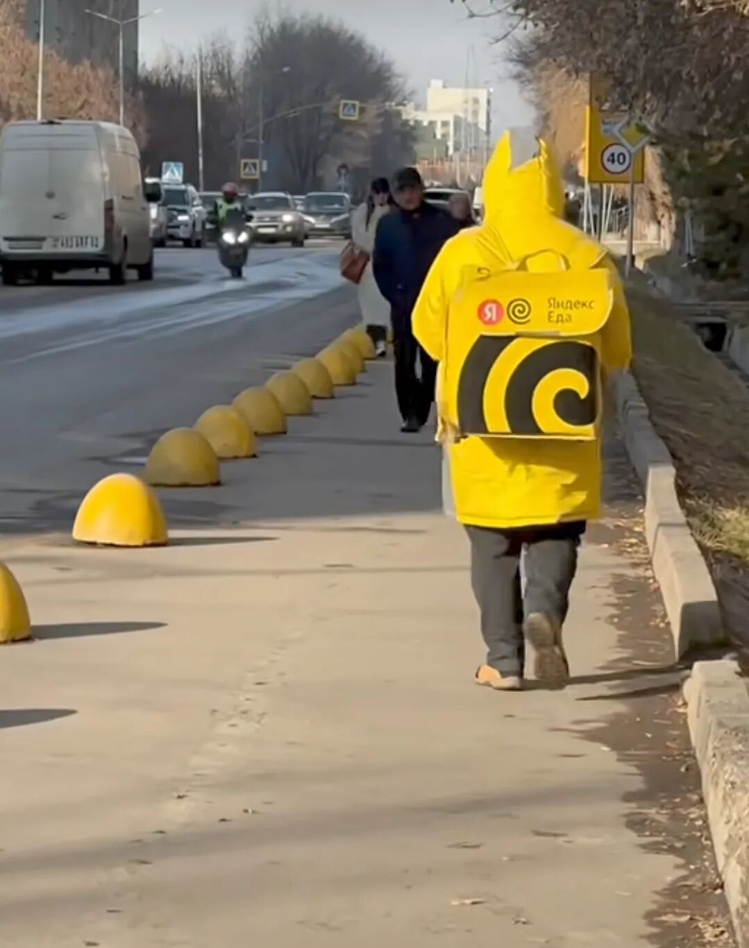 当地“骑手”,正在步行送外卖。因为不方便,当地人几乎不怎么点外卖
