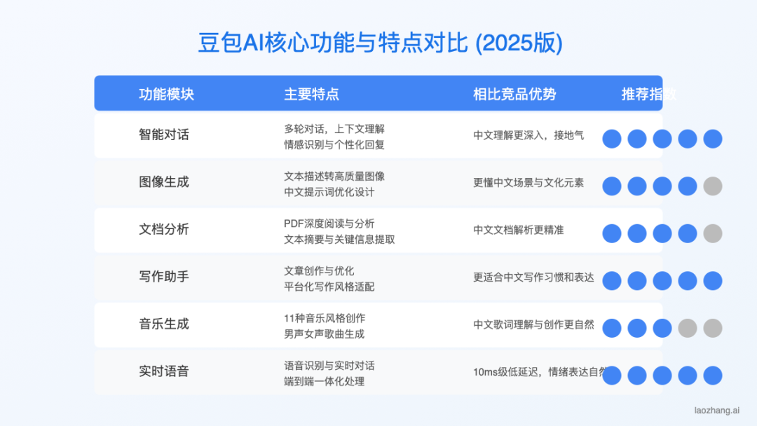 2023年8月豆包APP上线,首批只提供文本对话与基础图像生成能力。此后,字节延续过往“快速验证、快速开发、快速推新”的流水线模式,2024年5月新增文档上传与要点提炼功能。2024年底加入了实时语音交互、高级AI音乐创作等功能。