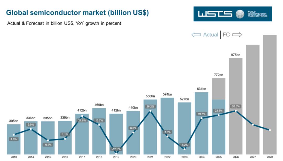 2025年市场规模预计同比增长22.5%,远高于此前11.2%的预测;2026年有望再增长26.3%,达到9750亿美元,距离万亿美元大关仅一步之遥。