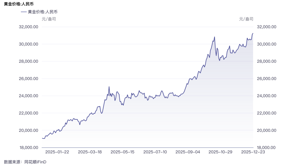 这一年,黄金价格疯涨。据同花顺iFinD数据,黄金价格从年初的约2万元/盎司一路飙升至如今的超3万元/盎司。