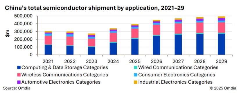Omdia表示,2025年,中国半导体市场预计将实现显著增长,市场规模达3930亿美元(同比增长16%以上),主要得益于人工智能数据中心的投资推动。