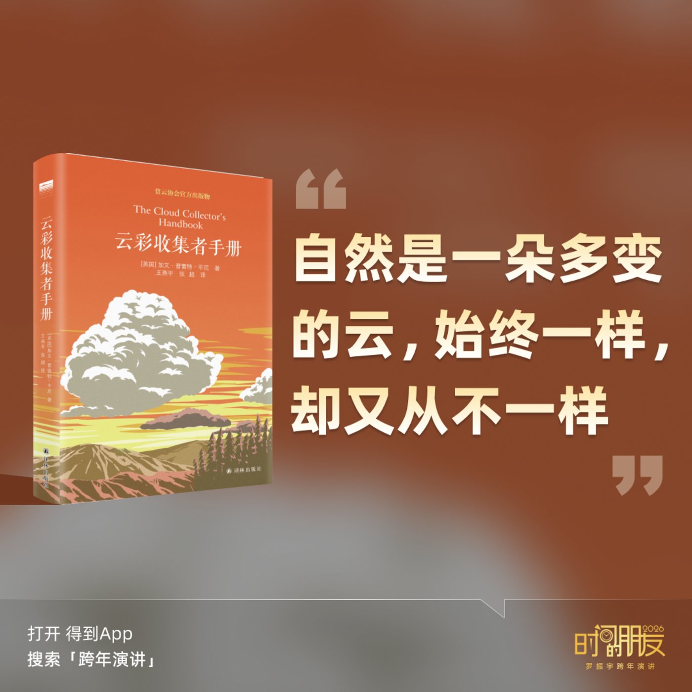 “收集云彩”,听起来太扯了,像云彩这么瞬息万变、飘来飘去的东西,怎么能收集呢?诶,英国真就有这么个看云的协会,本书作者加文·普雷特-平尼,就是会长。说实话,这书原来完全不在我的阅读趣味,但我的同事李倩老师提醒,说好的人要突破一致性呢?怎么就不能读点没用的,把你的独特性再渲染一笔呢?我被说服了。来一趟人间,总得抬头看看云彩吧,得知道一下云彩的类型和来历吧。