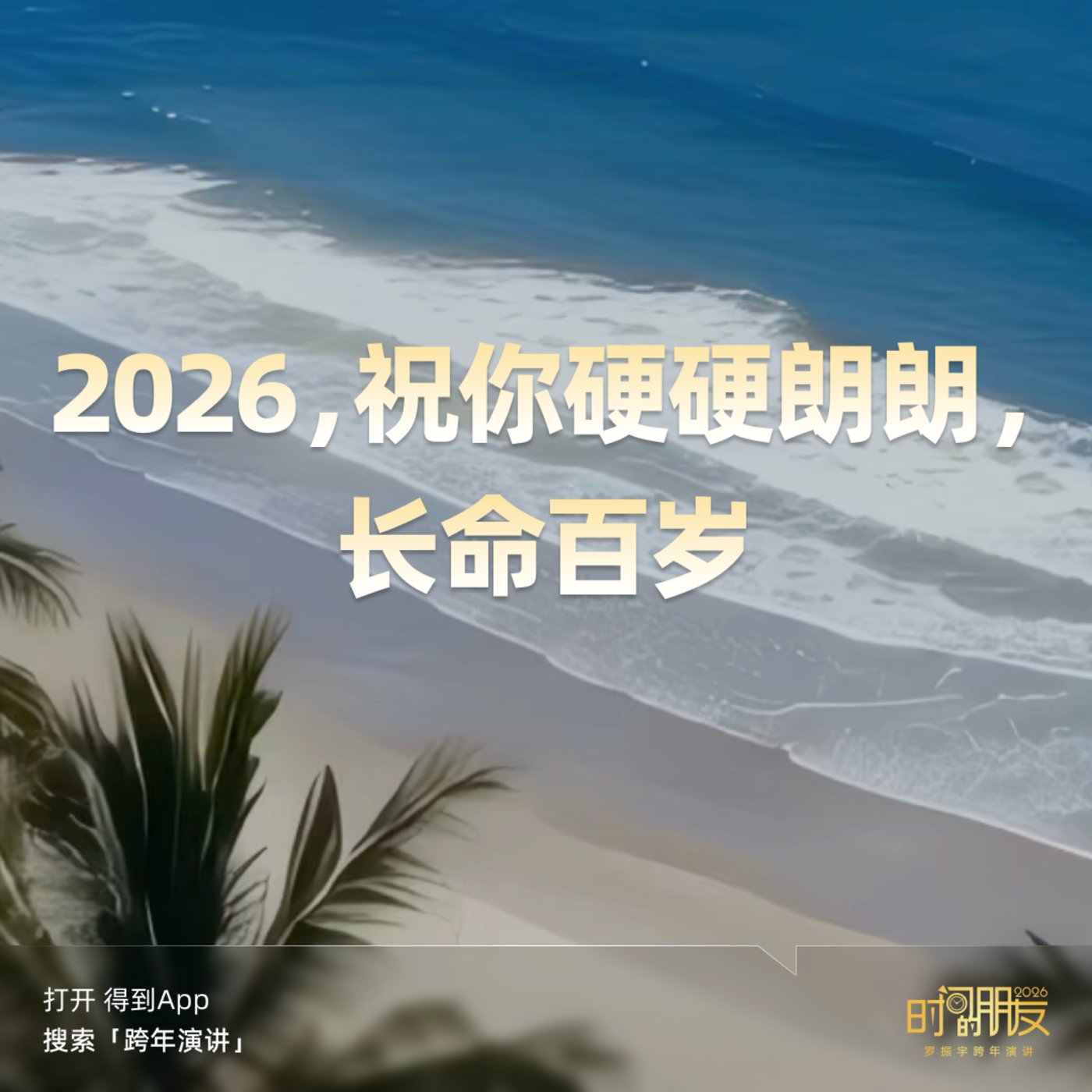 我也祝所有时间的朋友,跨年演讲现场的几千名观众,还有,此刻在全球324个分会场的朋友,还有,此刻在全网观看直播的上百万名朋友,大家都硬硬朗朗、长命百岁!看得到,也享受得到这一轮科技革命给我们带来的福祉。