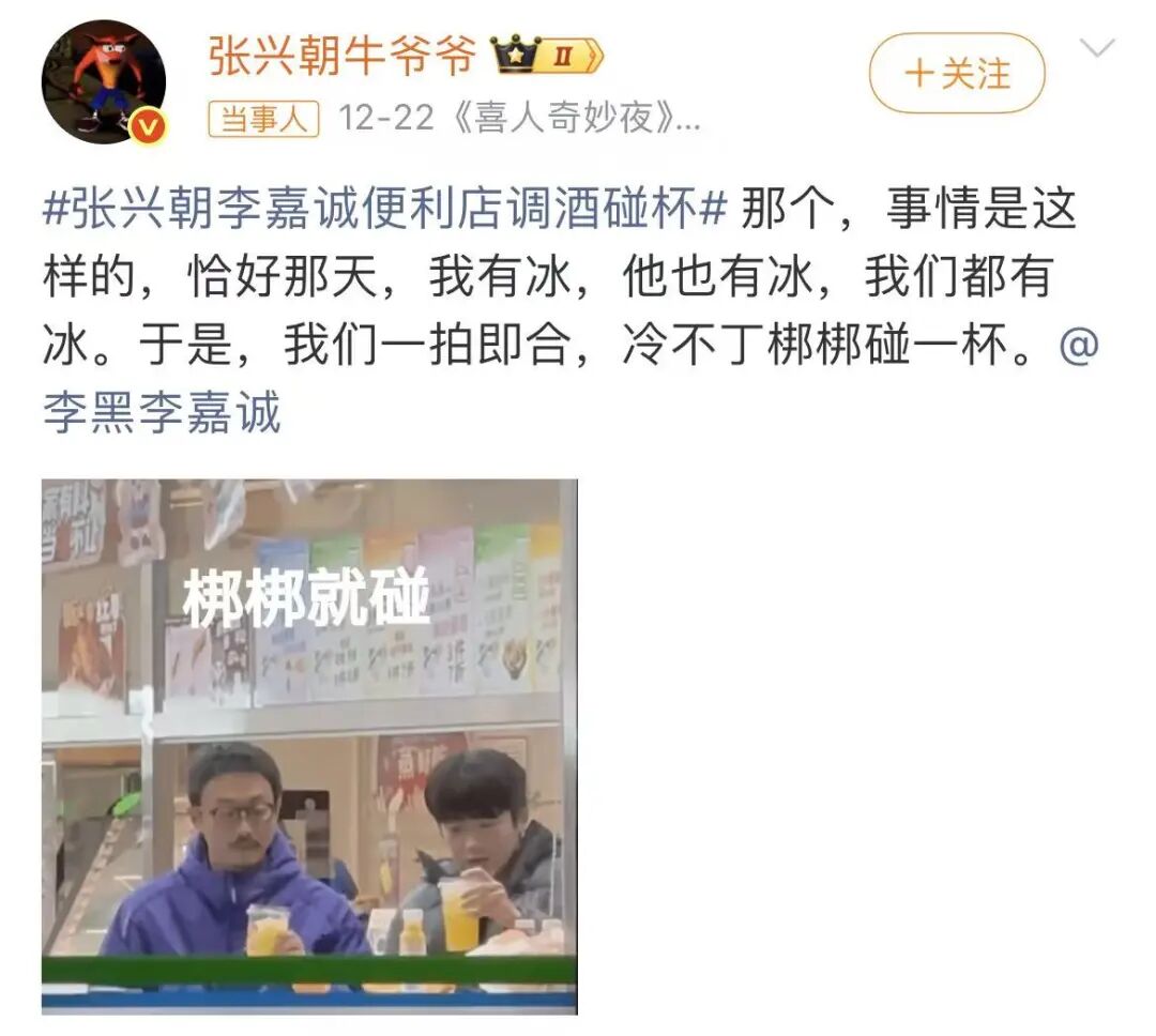 而紧接着这件事,内娱关于活人感也有两个不大不小的热点:一个是小鱼写过的,王俊凯粉丝的"脱粉事件“,粉丝们对于王俊凯在全红婵面前表现出的“自然”,感到陌生且受伤;另一个则是张兴朝和李嘉诚在大火之前,一段在便利店里调酒的视频意外被看到,有人在评论区留言,这种活人的感觉太美好了。