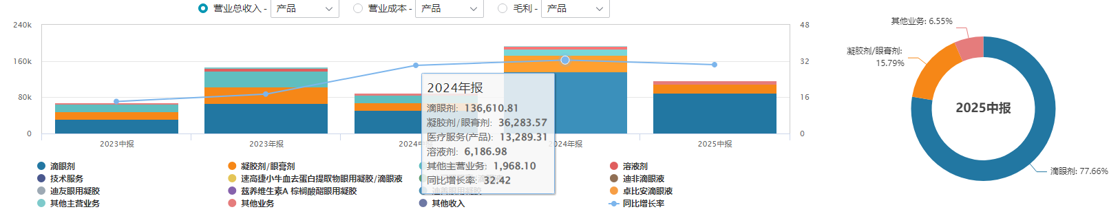 但现实销量与市场预期存在明显落差。2024年3月,兴齐眼药0.01%硫酸阿托品滴眼液正式获批上市,然而当年年报显示,包含该产品在内的滴眼剂系列整体销售额仅13.66亿元,其中阿托品滴眼液销量不足7亿元,远未达到机构预测的15亿元目标。