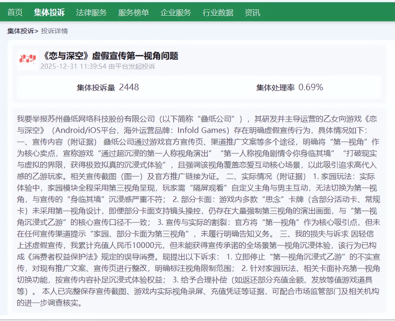 上线几天,大量玩家开始投诉恋与深空的虚假宣传。