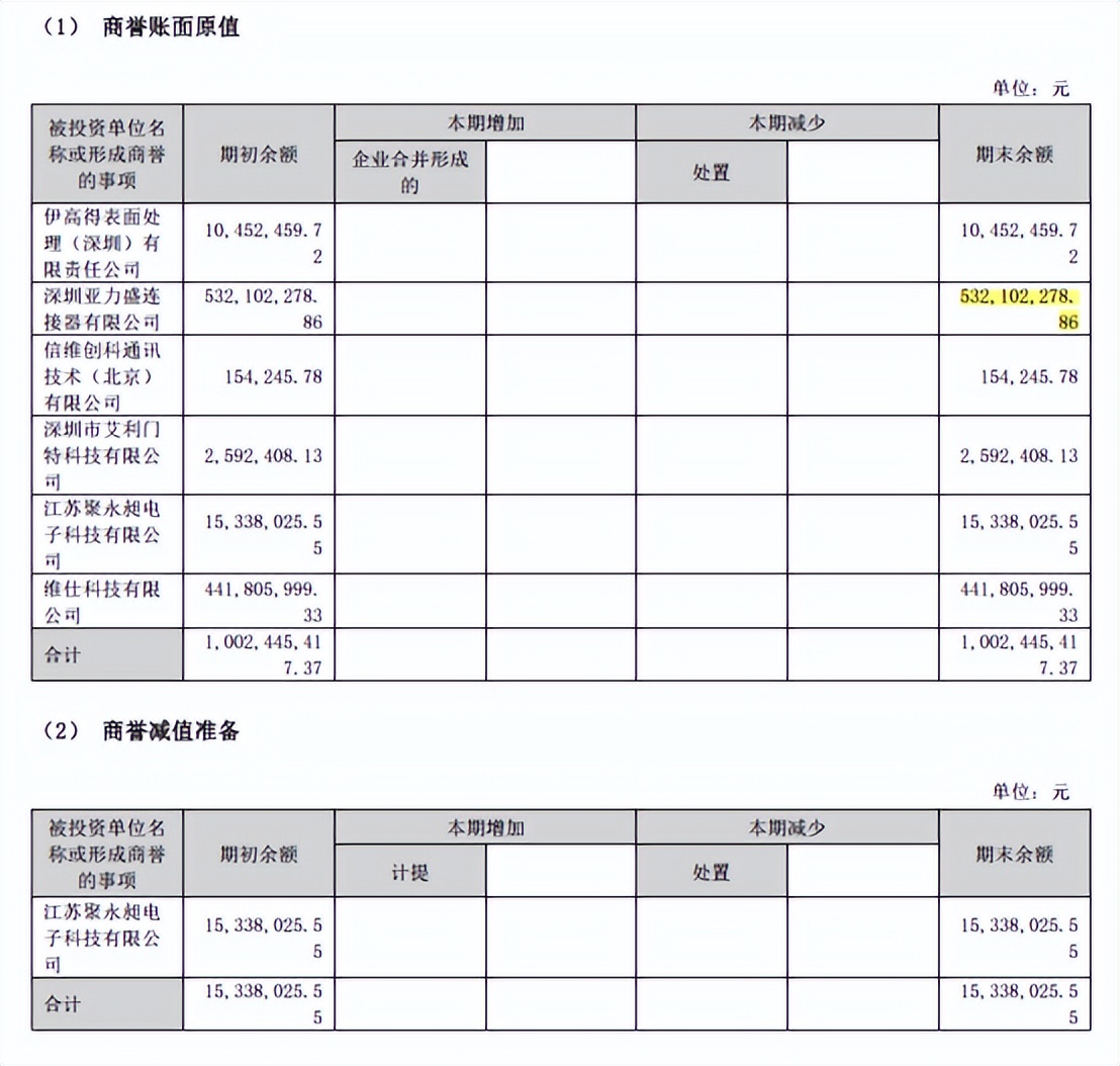 例如,华勤技术和领益智造的商誉与信维只是一两个亿的差距,分别为13.33亿元和11.74亿元,但华勤技术总资产已经超过1000亿元,净资产248.7亿元;领益智造总资产超过500亿元,净资产231.85亿元。