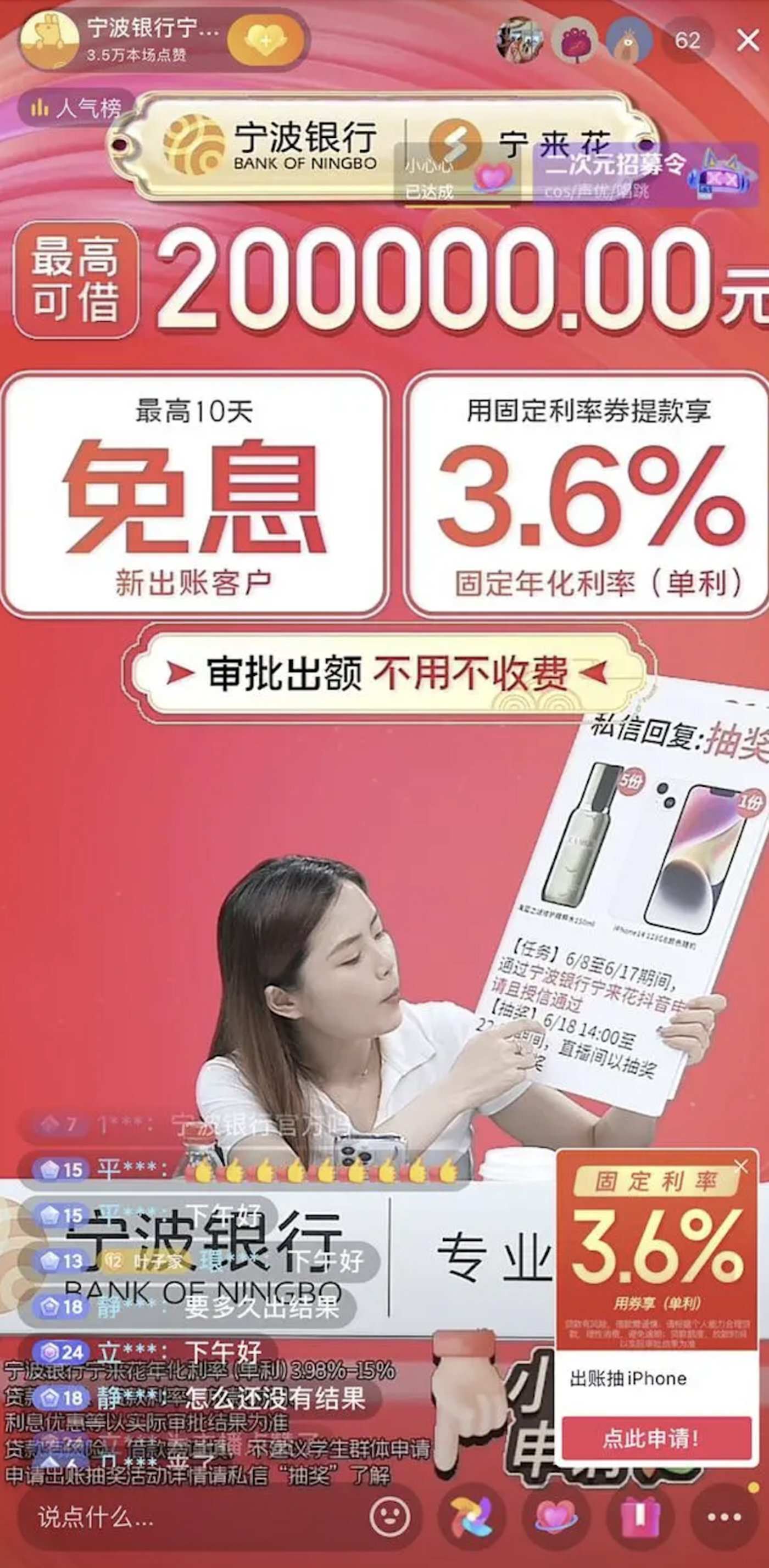 宁波银行是最早尝试抖音直播贷款的银行机构之一,后被监管叫停