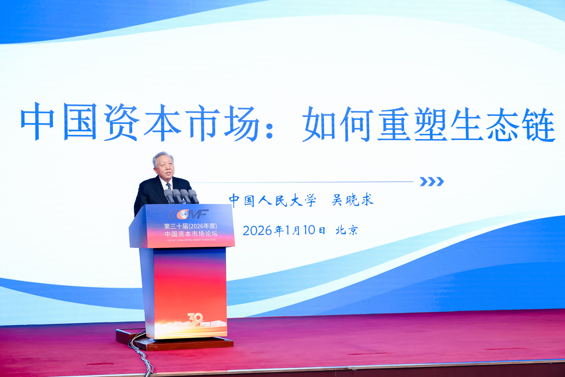 1月10日,由中国人民大学国家金融研究院、中国人民大学财政金融学院主办的“第三十届(2026年度)中国资本市场论坛”在京举行。论坛主旨演讲中,中国人民大学原副校长、国家金融研究院院长、国家一级教授吴晓求表示,在“十五五”时期,重构中国资本市场生态链是我们面临的重要任务。