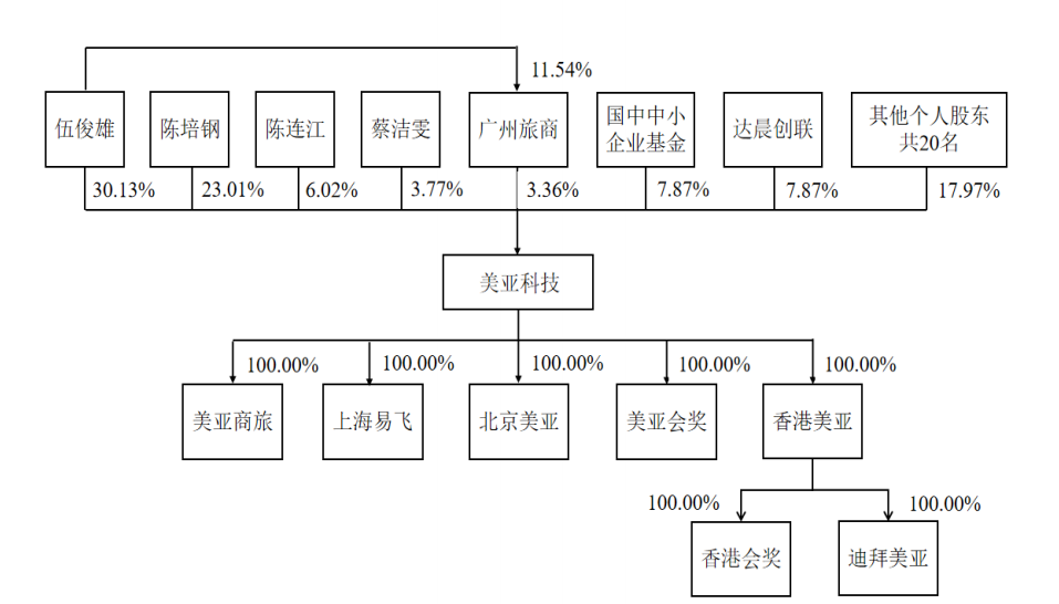 招股书显示,美亚科技成立于2003年,由伍俊雄、陈培钢等人共同设立。成立之初,公司主要从事B2B票务分销,与多家旅行社和航司建立合作关系。