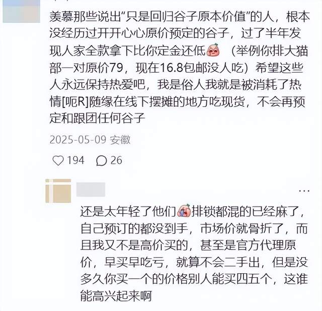 “谷圈”和谷子经济并不等同。对于单个产品和用户而言,“谷市崩盘”是泡沫的破裂,真正不可抗力下诞生的高价绝版衍生品价值仍然稳定,而“普谷”则由于体系成熟,变得量大管饱,逐渐回归工业纪念品的本质,让投机窗口越来越窄。
