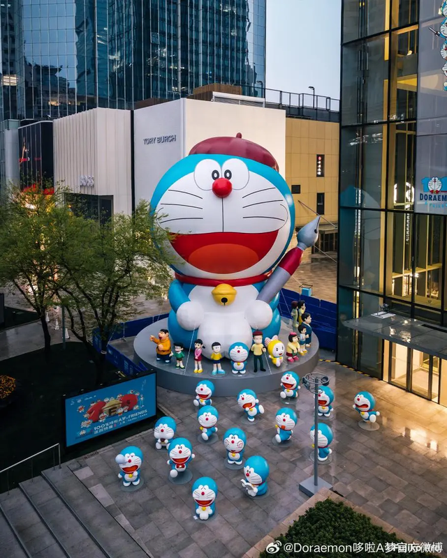 日本常见的IP展模式相对常态化和轻量化,形式多样,且由限定谷子场贩主导,这样的模式已被静安大悦城等商场本地化为直接带动销量的“快闪”。而哆啦A梦展这样付费的TO C大型IP展接续的则是近两年国内常见的“景观化”营销,通过巨物化核心角色的方式,吸引一线城市营销资源的倾斜和潮流人群打卡,带动社交圈的层层辐射。