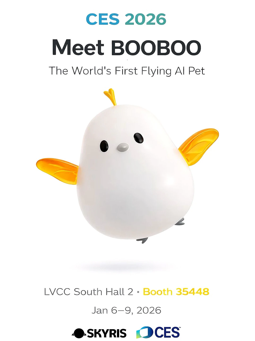 据不完全统计,今年CES参展的AI陪伴类企业超30家,来自中国的厂商至少就有20家,其中不乏产品还未正式发售、第一次参加CES的创业团队。例如能飞、会主动靠近用户的飞行宠物“BOOBOO”,其制作公司来自深圳的宇灵无限(Skyris),团队此番来CES主要是为了用户共创和概念前测,虽然并未带实物到现场,但也吸引了不少参会者驻足。