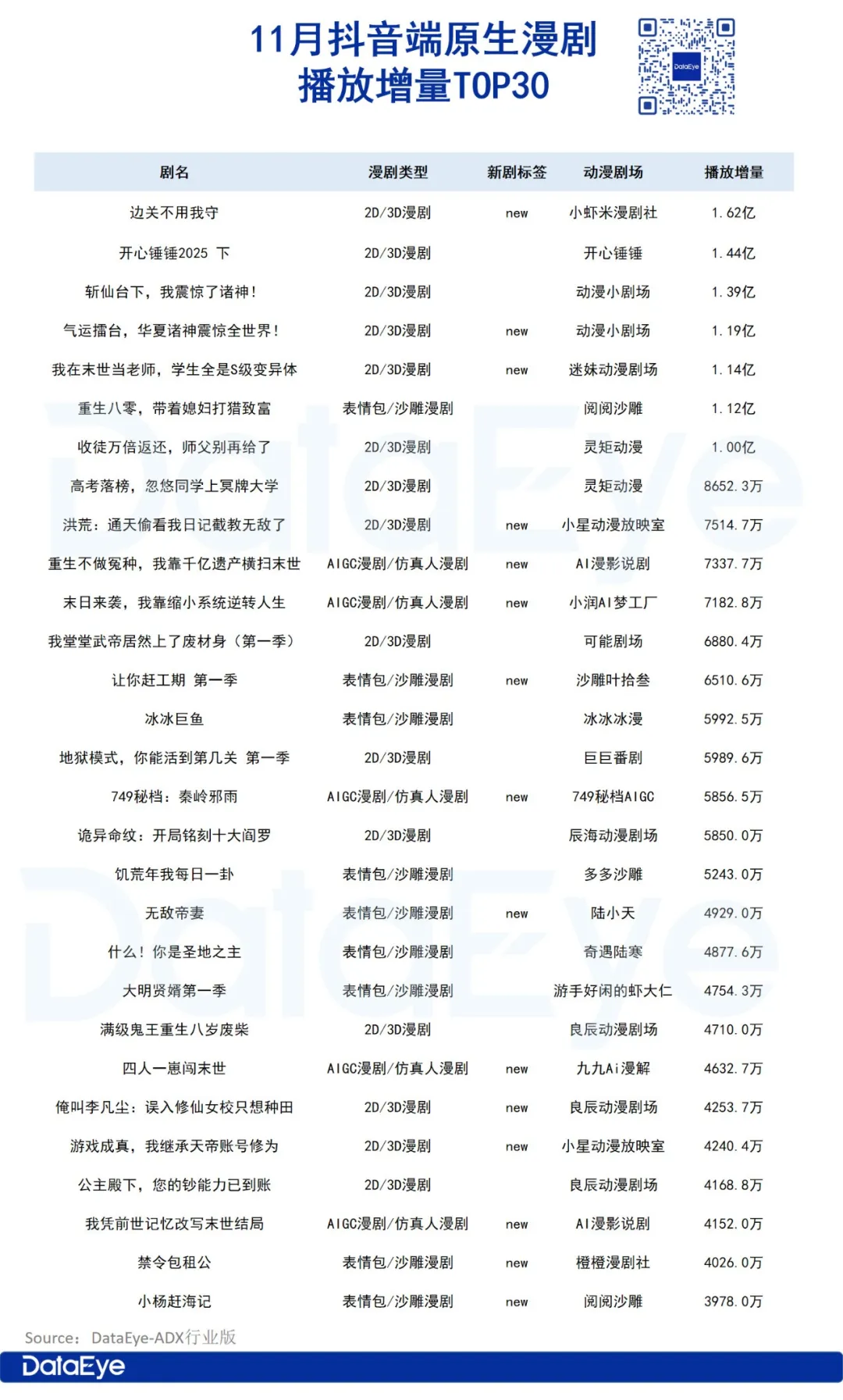 (一)2D/3D漫剧榜TOP30