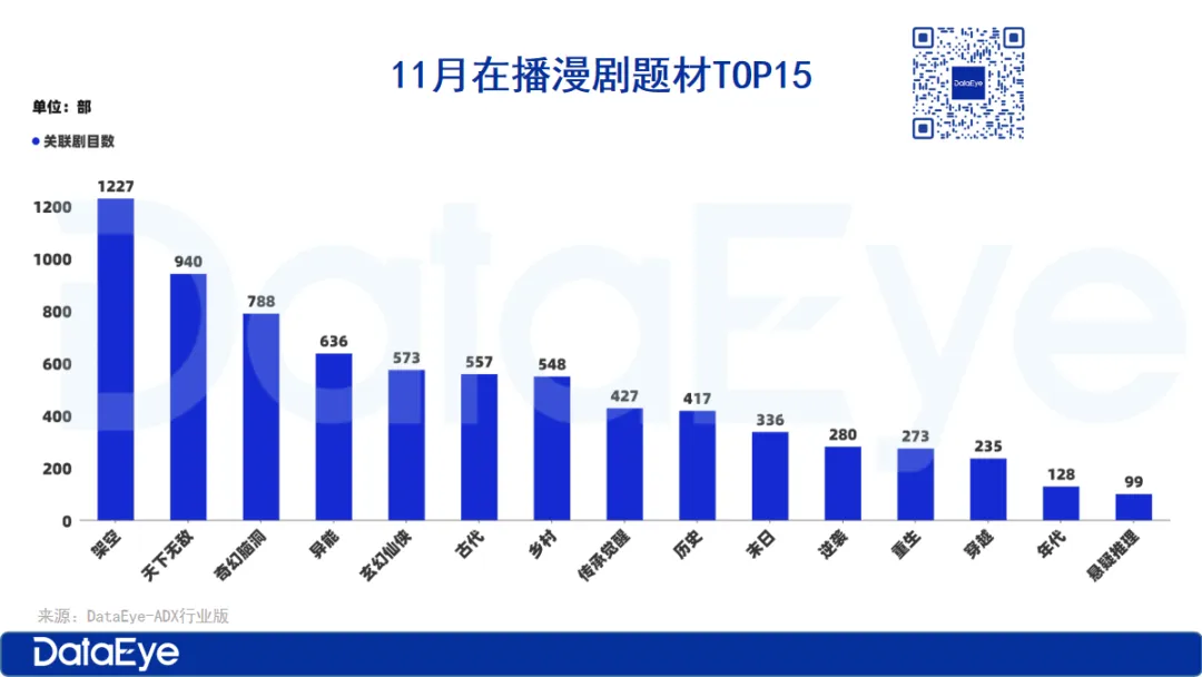 DataEye短剧观察认为,一方面,审核标准落实初期存在过渡期不确定性,审核流程耗时增加,导致上线效率下降;另一方面,新平台审核要求趋向严格,内容合规性、制作质量等门槛提升,通过率较此前明显下降。双重因素叠加,最终导致11月漫剧上新规模呈现 “断崖式下跌”。