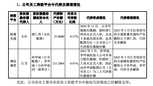 而其中的股权激励操作更显蹊跷,2020年11月,公司向尚未入职的唐仁伟实施股权激励,对应持股比例 0.37%,股权由其配偶、公司员工朱红代持;2022年2月,又向尚未入职的林甲威、李甲福实施股权激励,对应持股比例0.91%,股权由林甲威配偶、公司员工江芳为二人代持。上述三人皆在未入职的情况下获得公司股权激励,而联讯仪器在申报稿中,并未详细披露唐仁伟、林甲威、李甲福的个人履历,其为何能享有这一特殊激励的原因,目前尚无明确答案,也让此次股权激励的合理性备受市场关注。
