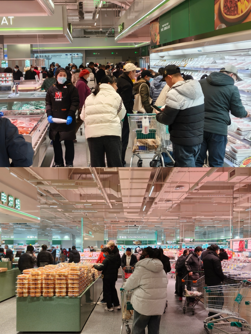 「零售商业财经」实探长申超市郑州锦艺城新店时,该店已开业第四天(12月30日)。即便时值工作日上午,店内依旧人头攒动,生鲜、肉制品等区域更显热闹,不少中老年顾客驻足挑选鲜肉与蔬菜,人气丝毫不减。