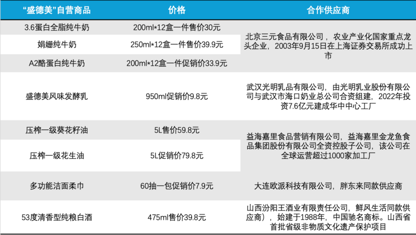 具体到长申超市,相较于此前的商品结构,其新店型的自营商品矩阵已实现显著扩容。除了前文提及的自营烘焙品类外,“盛德美”系列自营商品已覆盖米面粮油、冷冻食品、乳制品等多个民生品类。