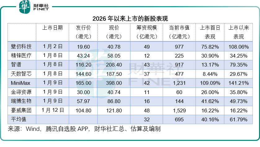 据财华社统计,截至2026月1月12日收盘,2026年开年首批上市的新股上市首日平均涨幅达40.16%,累计平均涨幅接近62%,如此整体强势的表现,充分印证了市场对优质硬科技资产的高度认可。