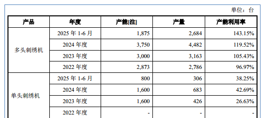 需要指出的是,2023年-2024年和2025年1-6月,信胜科技的产能分别为1600台、1600台、800台;产能利用率分别为26.63%、42.69%、38.25%,现有产能尚未得到充分释放。在自身产能利用效率偏低的背景下,公司仍计划大幅扩充产能,其扩产的必要性与市场消化能力亟待合理解释。