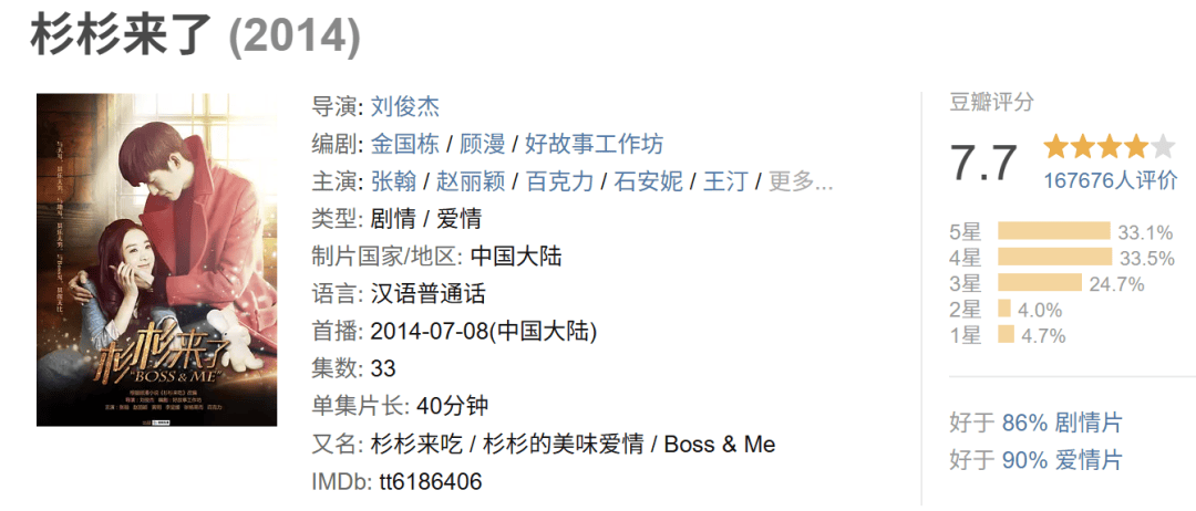 事实上,顾漫IP虽缔造了拍一部火一部的连胜“神话”,可口碑却是呈现下滑趋势,豆瓣评分最高的《杉杉来了》也没能迈入8分门槛。