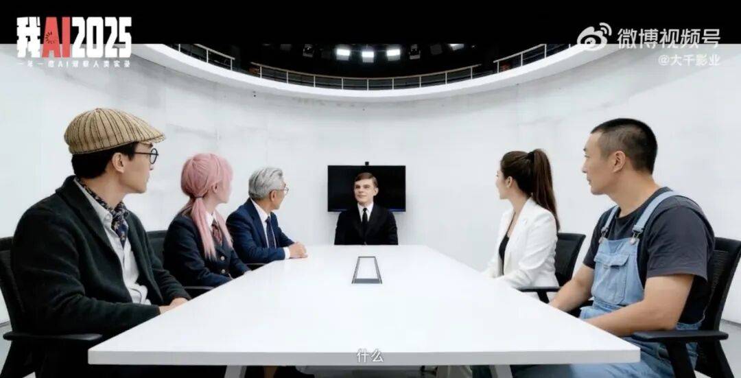 二来,尽量搭建了一个赛博世界AI综艺咖们真情实感录综艺的节目框架,这或许是大千影业官博这次敢喊出“内娱首档AI长综艺”来定义节目的原因。预告片一上来,我们可以看到AI综艺咖们像真人一样录棚综、做后采、圆桌会,似有灵魂的他们甚至提出了“真人是要脸的”、“真人是会把人当人看的”、“真人是不是早就不知道梦想是什么了”等自我觉醒式的自嘲和讽刺,说真的,颇有点AI界开吐槽大会的真人秀质感。