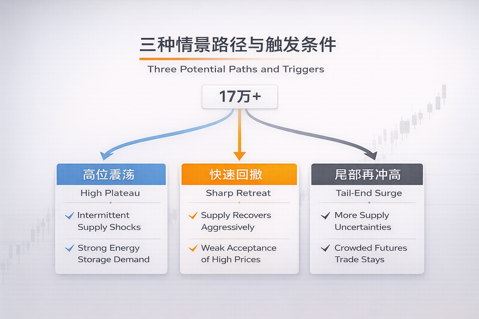 未来3到6个月,更可能呈现高位震荡的基准路径,前提是供给扰动间歇出现但不演化为系统性缺口,同时储能需求保持强度。如果供给兑现超预期、下游拒价明显、补库结束,价格可能出现更快回撤。拒价往往会体现在现货成交转淡、基差收敛、以及中下游补库节奏明显放缓。若供应链不确定性进一步上升,或需求端出现新的集中兑现窗口,而期货端资金拥挤未退,继续冲高则属于尾部情景。