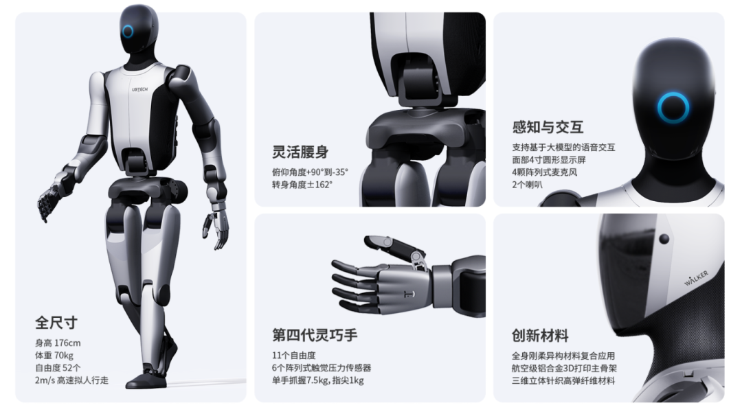 除了特斯拉Optimus、宇树之外,优必选推出的全新一代工业机器人WalkerS2的灵巧手拥有11个自由度,搭载6个阵列式触觉压力传感器,得益于灵巧手的高强度轻量化设计,WalkerS2不仅能够实现亚毫米级精密操作,还可在0-1.8米的全空间范围内托举15kg的重物,满足工业级搬运的作业需求。