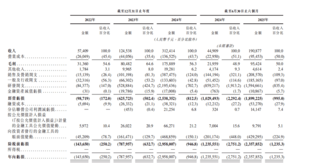 根据招股书,智谱已成为中国收入规模最大的独立大模型厂商之一。2022年至2025年上半年,分别实现营收5740万元、1.245亿元、3.124亿元、1.9亿元,年复合增长率达到 130%。