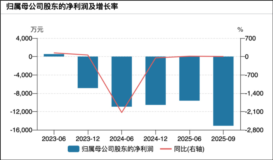 这样的增长故事,表面上看确实异常生动。但实际上,国晟科技却是一直在亏损的,并且亏损额一年多过一年:2023年亏损6888万元,2024年亏损1.06亿元,2025年前三季度亏损1.51亿元。最近公告显示,国晟科技2025年全年的业绩仍将亏损。