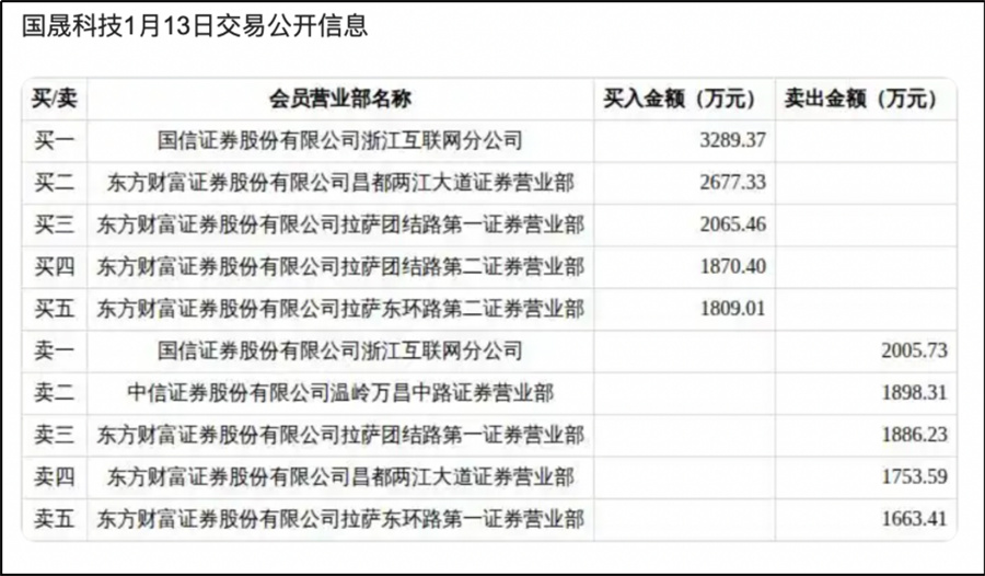 多家知名游资营业部现身国晟科技“龙虎榜”