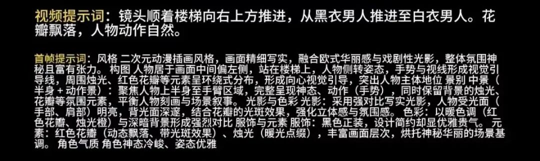 比如有创作者参考和复刻了女频AI短剧《星际兽世》开头片段,仅首帧画面的生成指令,就涉及风格、张力、构图、光影、色调等十余项专业视听术语,描述长达近300字。普通观众即使对作品有自己的衍生创意,也没办法掌握复杂的提示词体系来进行创作。