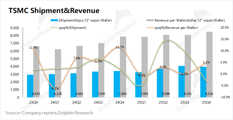 海豚君从量和价的维度,来观察台积电本季度收入增长的主要推动力: