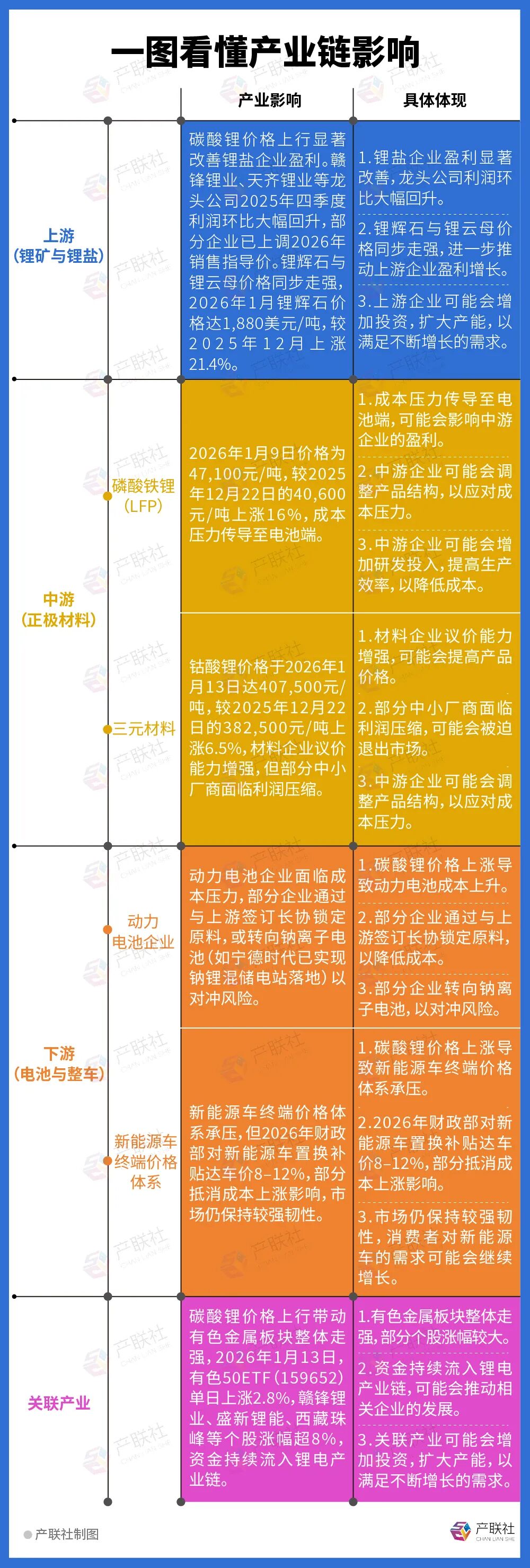 这一轮价格强势上涨由多重因素驱动,锂电池出口退税率下调引发一季度“抢出口”窗口期,国补提前落地、购置税优惠政策托底等政策前置效应提振新能源车产销表现,储能需求保持平稳增长,政策调整和生产问题等供应端扰动因素等,共同形成碳酸锂市场传统淡季下的强势局面。碳酸锂大涨局面能否继续维持?对新能源产业链有哪些深远影响?