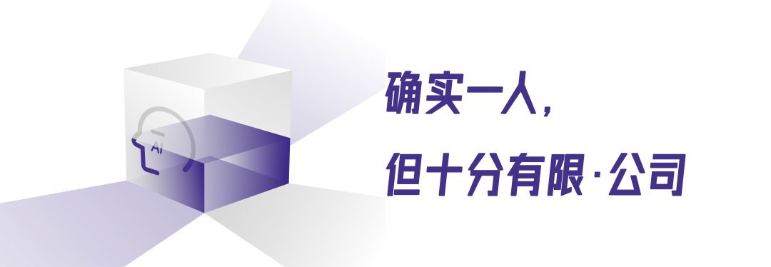 一人公司这种“重AI,轻人工”的业务模式,潜台词是投资者和创业者可以用非常轻量化的投资换来极高的回报。这样AI的蛋糕就不会只被基础设施类型的大公司瓜分,中小投资人与单打独斗的创业者也都有了充分的机会。