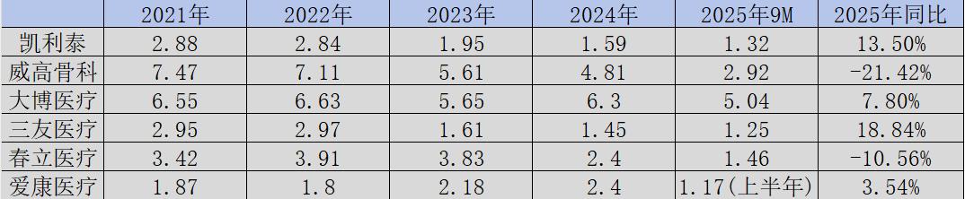 此外,集采政策有效压缩了行业中间流通环节,削减了不必要的市场营销开支,过去高企的渠道成本与营销费用得以大幅降低,各大骨科企业销售费用增长态势均明显放缓。其中,威高骨科的销售费用表现尤为典型:从2021年的7.47亿元逐年回落,2025年前三季度仅为2.92亿元,较2021年同期降幅达47.1%,降本增效成效显著。