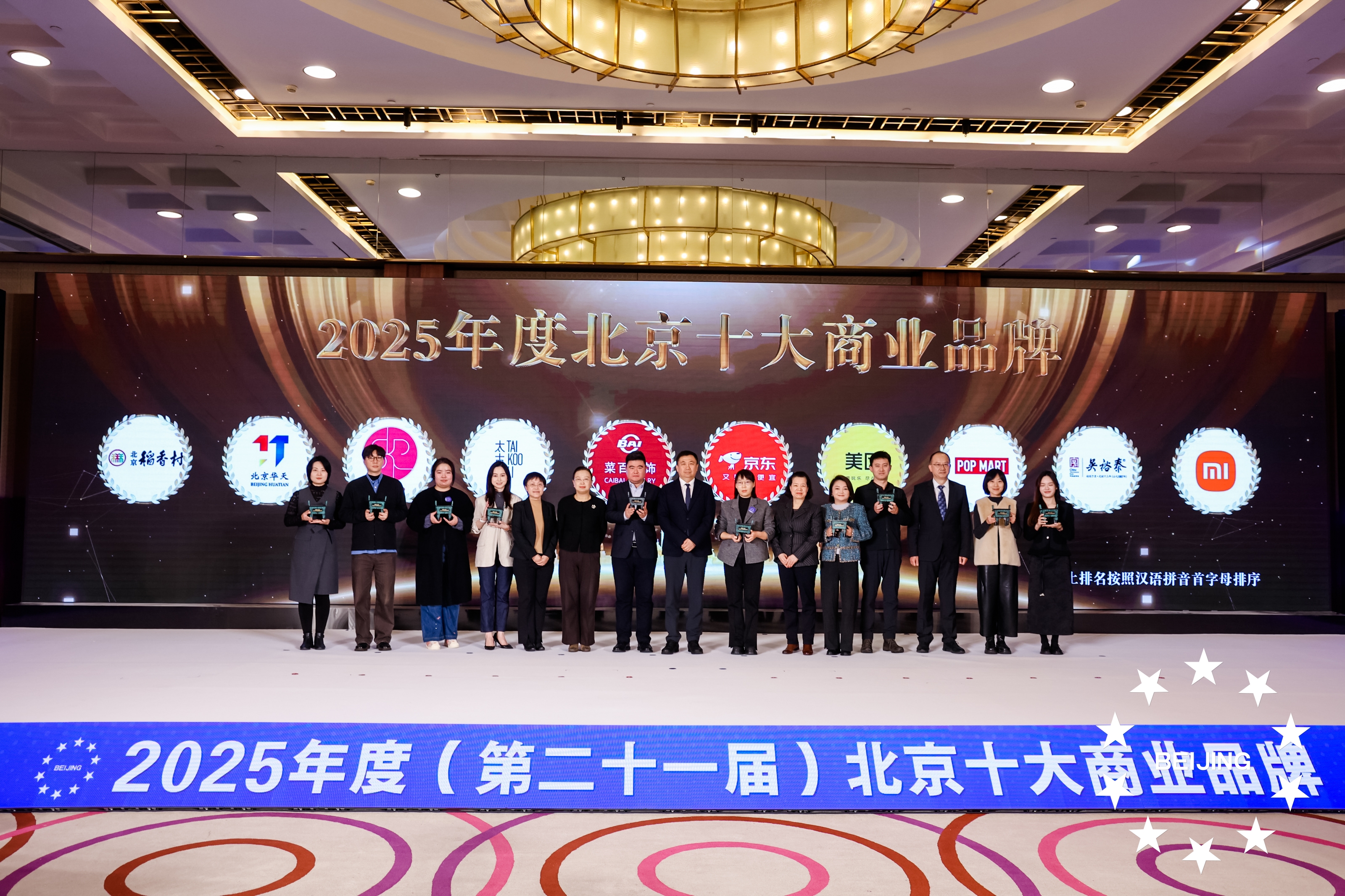 具体来看,“2025年度北京十大商业品牌”包含北京稻香村、北京华天、北京SKP、三里屯太古里、菜百首饰、京东、美团、泡泡玛特、吴裕泰和小米,涵盖商场/购物中心、潮玩、餐饮、专业店、电商、老字号等丰富的商业和消费业态,它们不仅在各自的领域内表现出色,更是推动北京商业持续发展的领航者。
