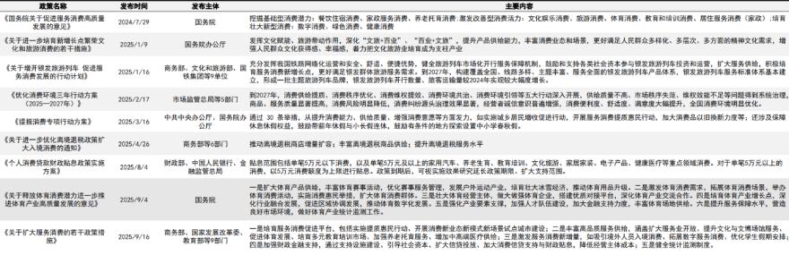 到了 2025 年政策推进节奏进一步加快:1 月,商务部、国家发改委等部门接着推出 48 条具体举措,9 月的《关于扩大服务消费的若干政策举措》更是把落地路径细化到位,近期总工会等部门还重点提到了文体产业…