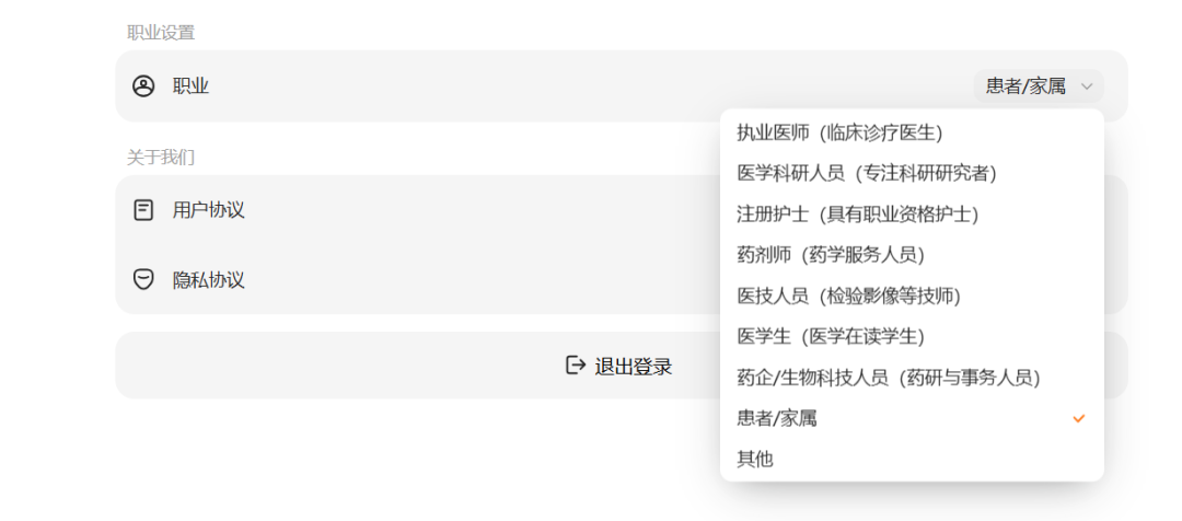 百川智能的“百小应”,很容易让人对比前段时间阿里推出的“蚂蚁阿福”。“趣解商业”注意到,相比阿福的“健康管家”定位,百小应更像是一款医学辅助工具,除了帮患者和家属解决问题,还面向广大的医护工作者;用户在登录时需选择职业,如药企研究员、护士、执业医师等。