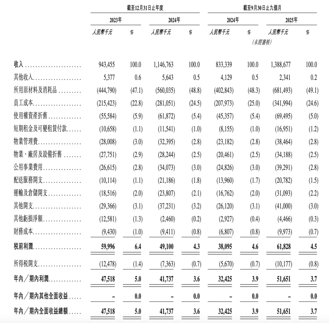 招股书显示,2023年比格比萨营收为9.43亿元,2025年前九个月,公司营收由上年同期的8.33亿元增长至13.89亿元,已超2024年全年规模,同比增幅超66%。