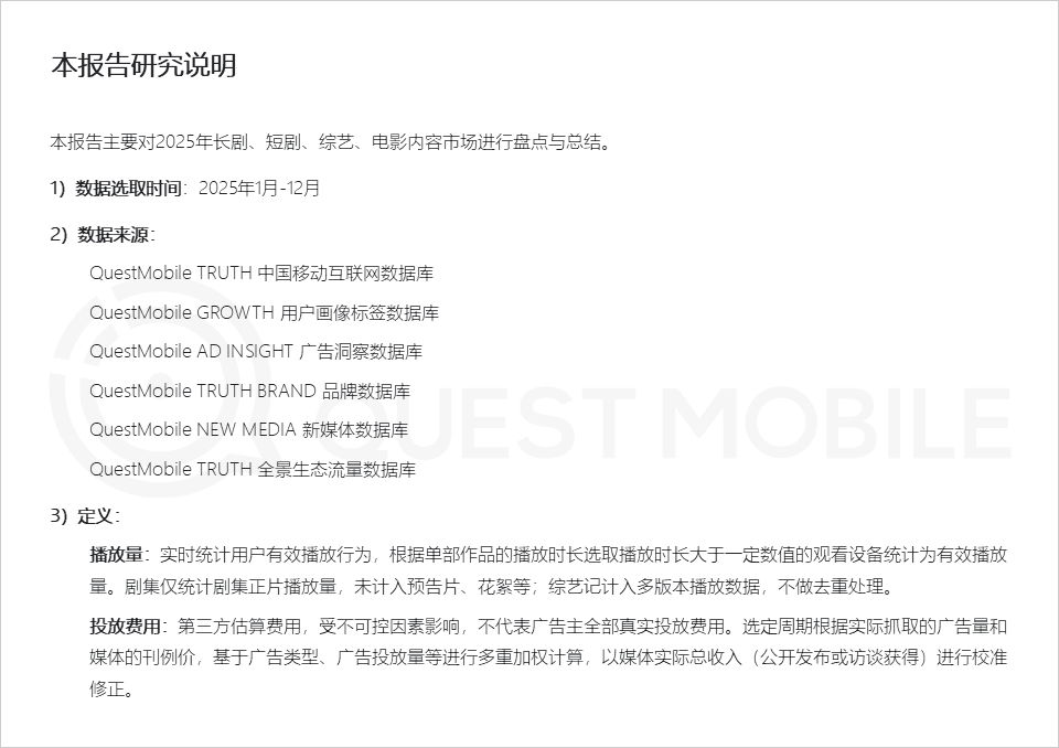 QuestMobile数据显示,2025年腾讯视频、爱奇艺、芒果TV、优酷视频四大视频平台,共上新268部剧集,同比2024年增长11.7%。